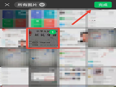 4、选择“从相册选择”,勾选身份证照片,点击右上角的“完成”。