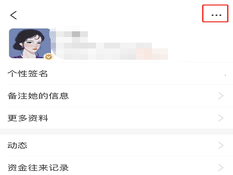 3、在联系人的个人界面上,点击右上角三点图标,进入联系人资料设置页面。