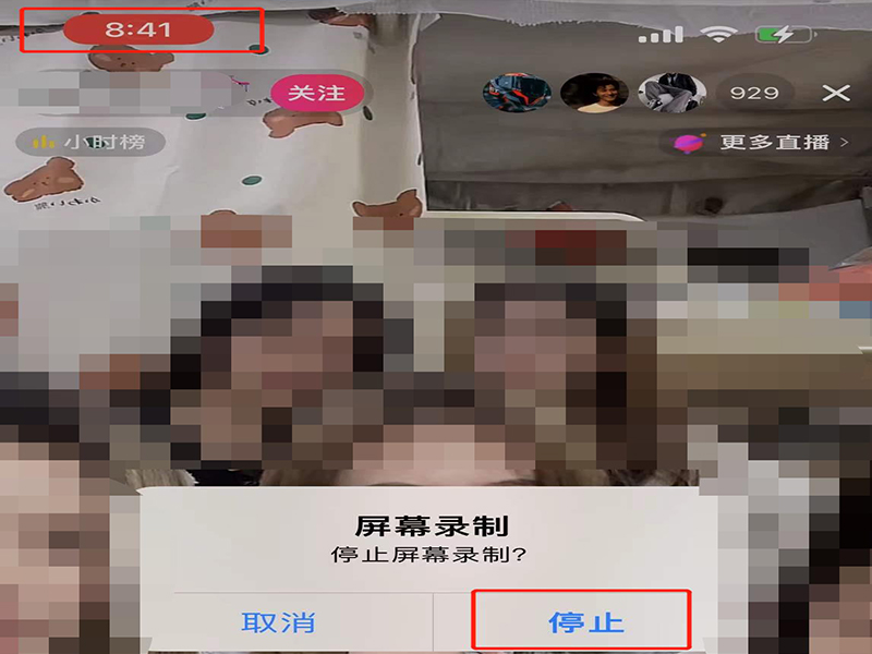 3、直播录屏结束后,即可点击左上角的红色数字,选择停止直播视频录制。