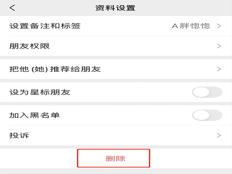 3、在好友的资料设置页面上,点击“删除”,即可删除该名微信好友。