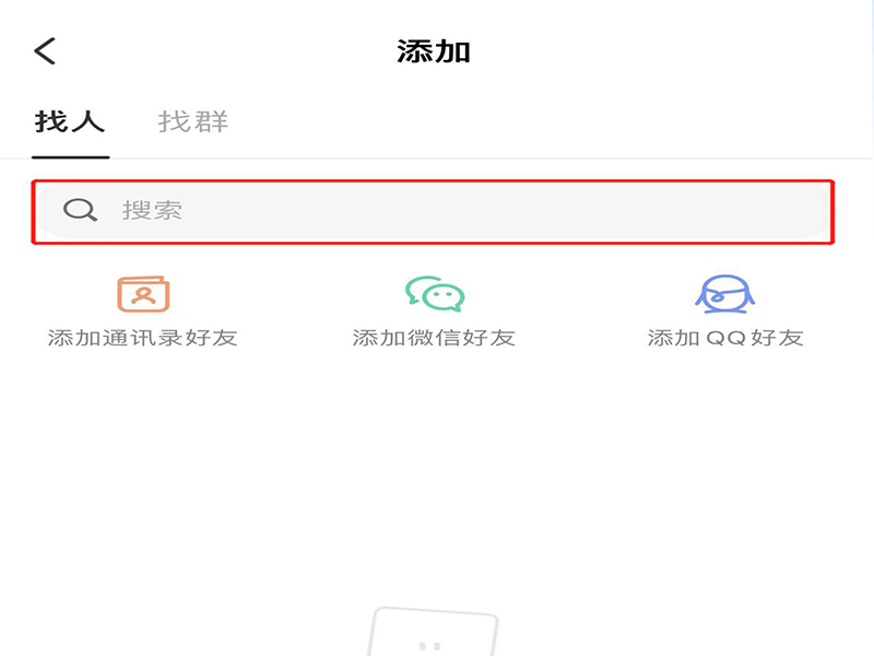 3、在添加好友页面上,点击搜索栏,进入搜索页面。