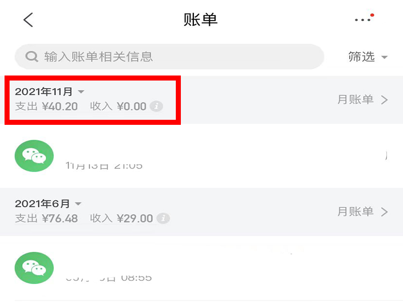 3、进入账单界面后即可查看每月的账单。