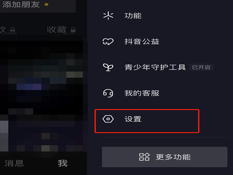 3、在抖音功能栏中,点击“设置”,进入抖音设置页面。