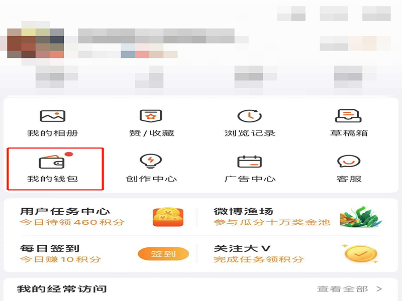 微博集卡红包会自动存入微博钱包余额中,所以可以直接在微博钱包中进行提现,具体操作如下: