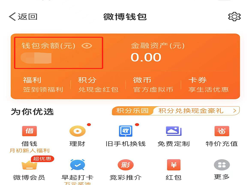 3、在微博钱包页面上,点击“钱包余额”,进入钱包余额页面。