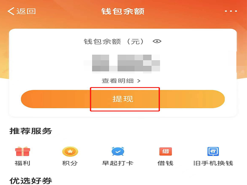 4、在钱包余额页面上,点击“提现”,进入提现页面。