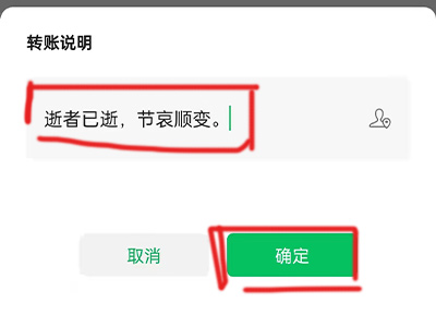 朋友老人去世微信转账可以说:如逝者安息,生者奋发,节哀顺变。遥祝老人一路走好,莫怪小辈无礼。生老病死是自然现象,要节哀顺变。逝者已逝,请你节哀顺变。人死不能复生,节哀顺变。朋友老人去世微信转账怎么说的具体操作方法如下:
