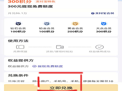 支付宝可以在支付宝会员页面使用积分增加免费提现额度。支付宝是国内的第三方支付平台,自2014年第二季度开始成为当前全球最大的移动支付厂商。支付宝增加免费提现额度的具体操作方法如下:
