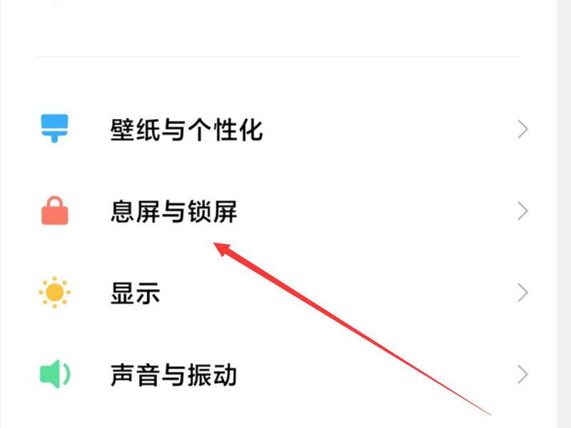 1、打开手机的设置,点击“息屏与锁屏”按钮,进入息屏与锁屏的设置页面。