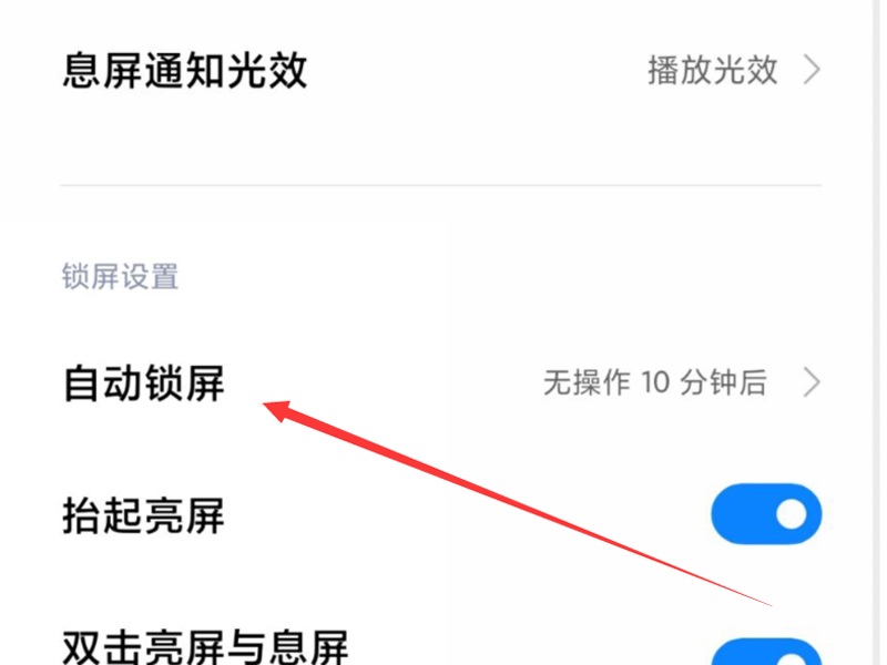 2、点击“自动锁屏”按钮,进入自动锁屏的设置页面。