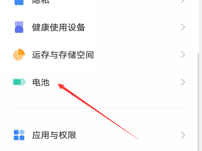 1、打开手机的设置,点击“电池”按钮,进入电池的设置页面中。