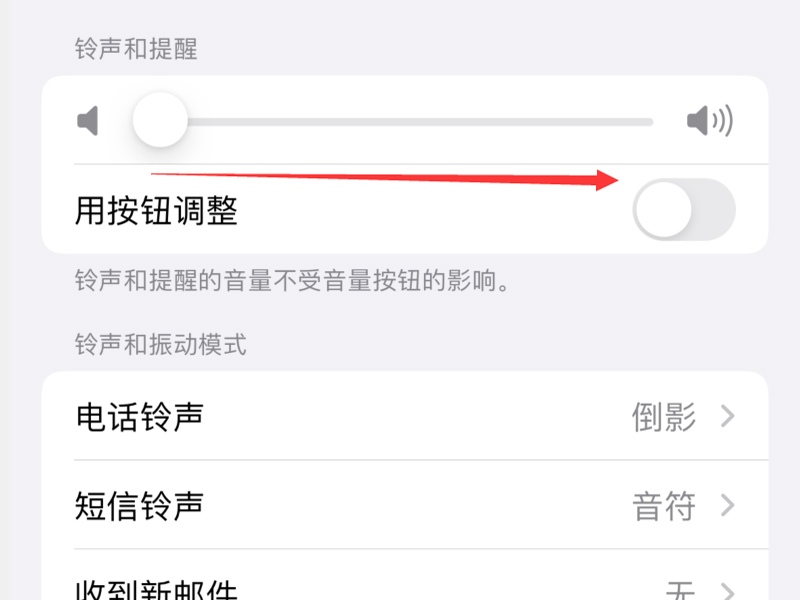 2、把“铃声和提醒”下方的调节条向右滑动调大音量即可。