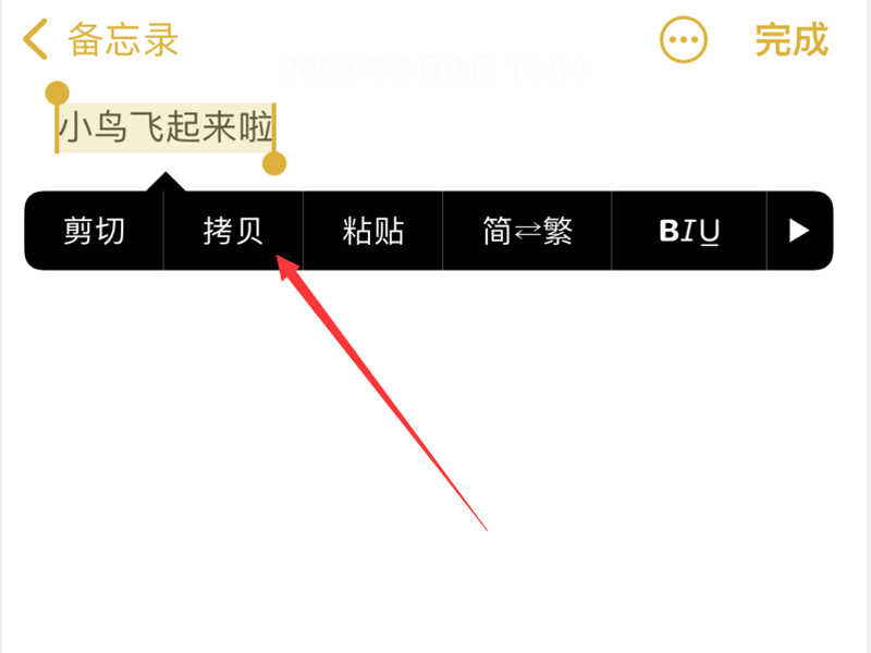 2、选择“拷贝”功能即可把选择的内容进行复制。