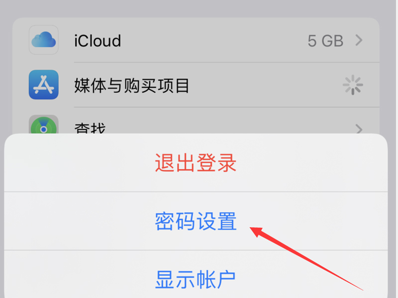 2、点击“媒体与购买项目”按钮,进入“密码设置”的页面中。