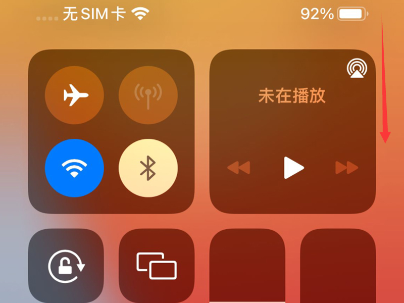 1、进入手机的桌面中,从手机屏幕的右上角往下滑,呼出控制中心的界面。