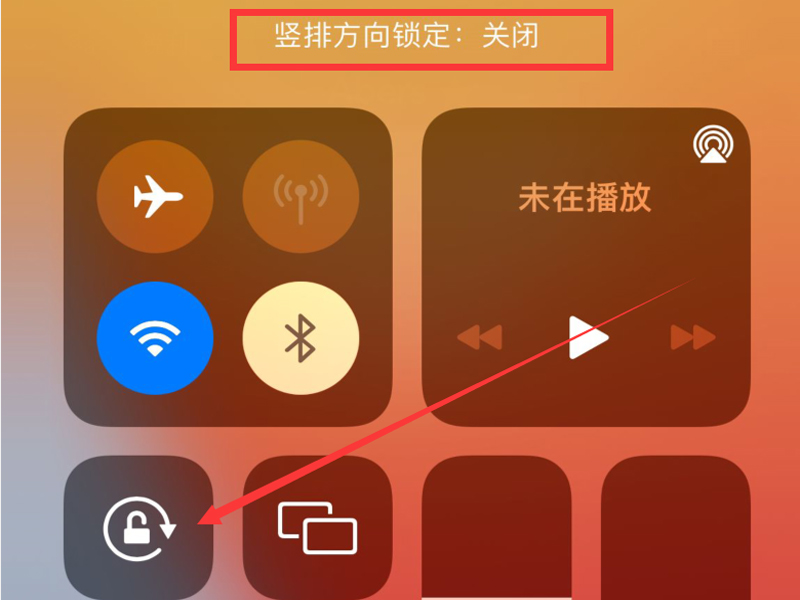 2、在控制中心里关闭“竖排方向锁定”的开关即可把手机旋转横屏。