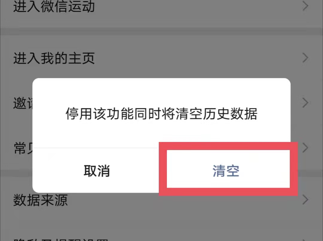 3、点击“微信运动”,再点击“停用”按钮,最后点击“清空”即可关闭微信运动功能。