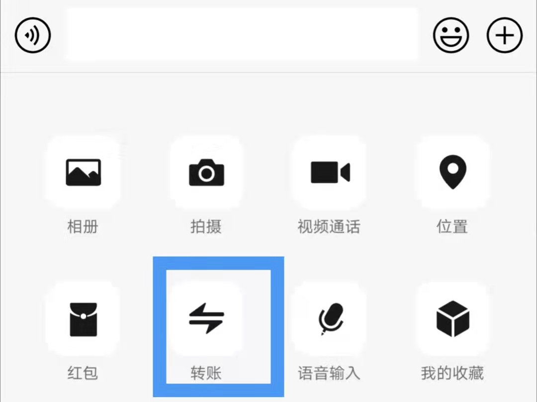 2、点击聊天界面右下角的“+”,再点击“转账”,进入转账界面。