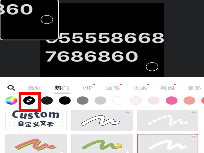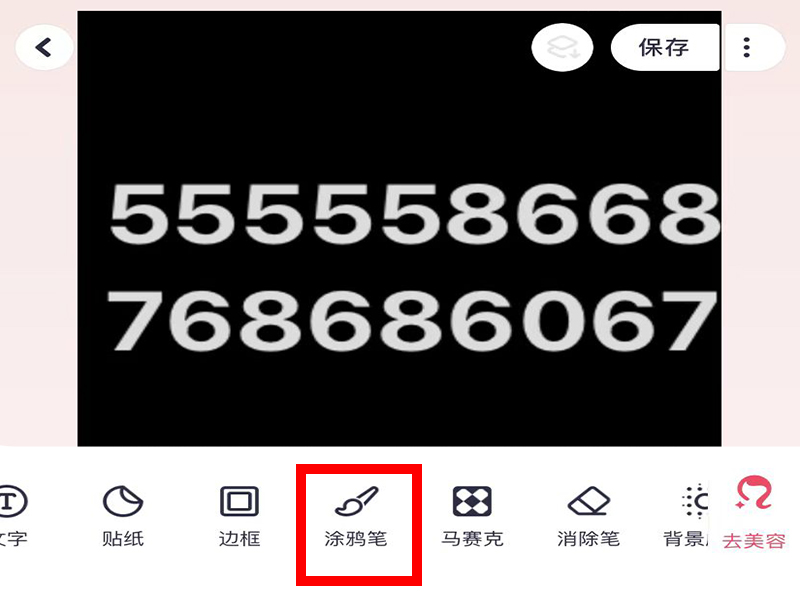3、进入“涂鸦笔”界面后,点击取色器吸取图片色,将原来的数字涂改掉。