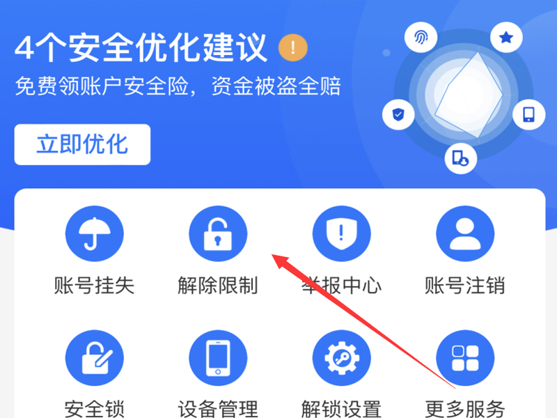 4、点击“解除限制”功能按钮,进入后自行操作申请解冻即可。