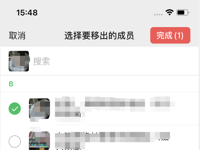 4、进入“不让他(她)看”,可以选择要移出的成员。