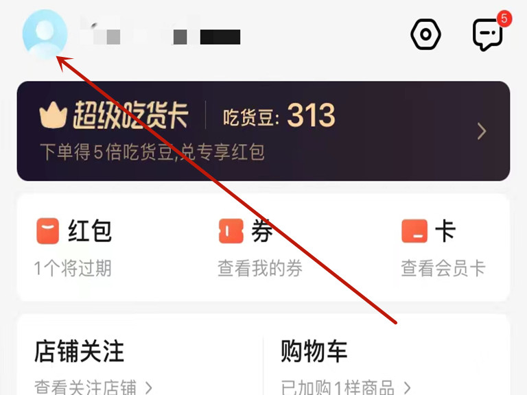 1、打开饿了么,切换到个人中心,点击“头像”进入个人资料页面。