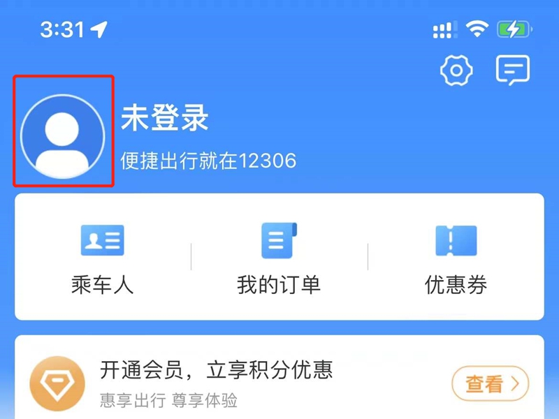 1、打开铁路12306app,点击右下方“我的”,轻点顶端的头像进入登陆界面。