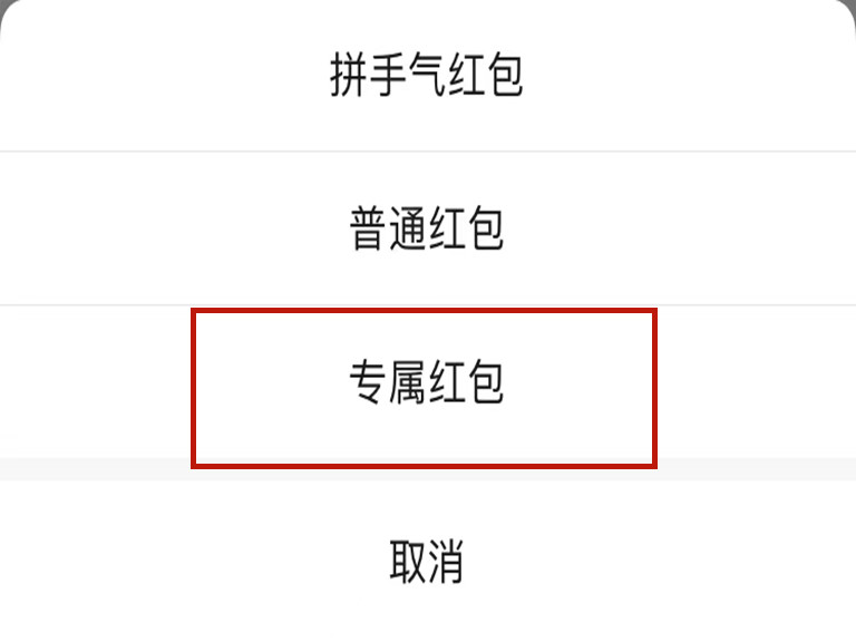 微信群想要发指定红包,发红包的时候选择专属红包即可发给指定的人,通过以下步骤发专属红包: