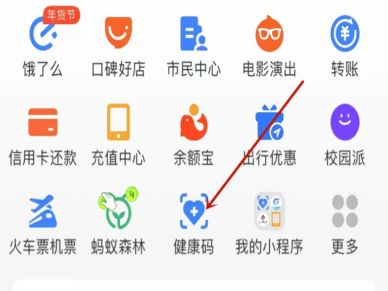 1、打开支付宝,点击“健康码”进入健康码页面。