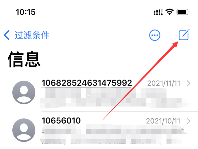 1、打开手机的信息app,点击右上角的编辑按钮,进入新信息的编辑页面。