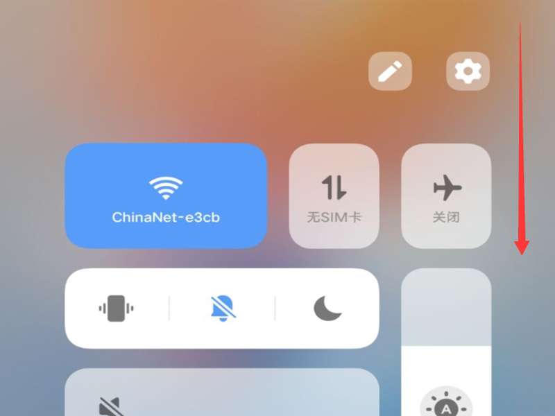 1、进入手机的桌面中,从手机屏幕的右上角往下滑,呼出控制中心的界面。