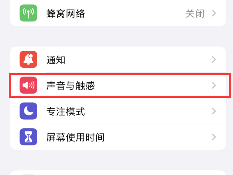 1、打开手机的设置,点击“声音与触感”按钮,进入声音与触感的设置页面。