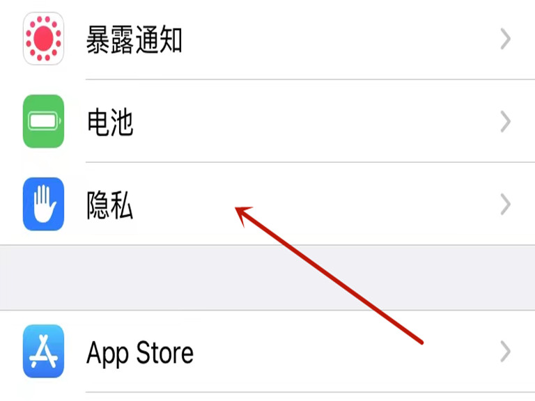 1、打开手机设置,点击“隐私”进入隐私设置页面。