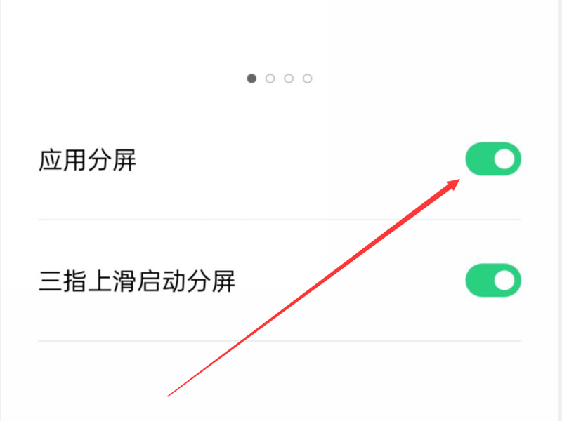 3、把“应用分屏”后面的按钮打开即可,三指上滑即可启动分屏。