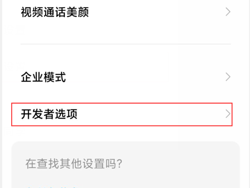 2、点击“开发者选项”按钮,进入开发者选项的设置页面。