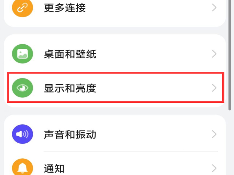 1、打开手机的设置,点击“显示和亮度”按钮,进入显示和亮度设置中。