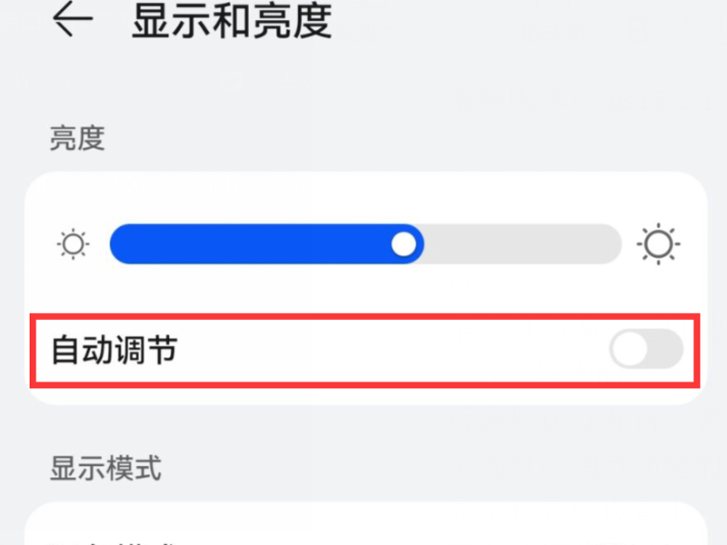 2、在页面中把“自动调节”按钮的开关进行关闭即可,关闭后就不会再自动调节了。