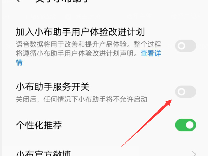 3、点击“关于小布助手”按钮,进入后关闭“小布助手服务开关”的按钮即可。