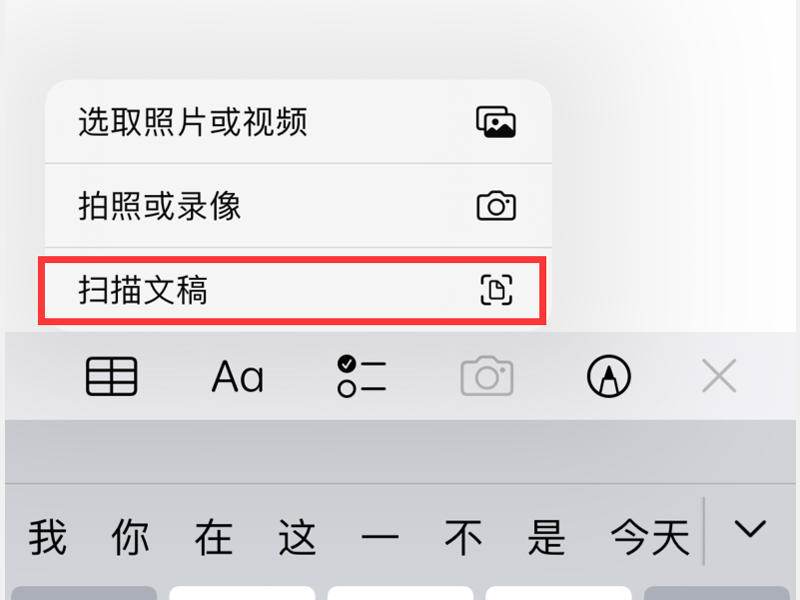 我们在使用苹果手机的时候,有时需要把一些图片上的文字扫描下来保存在备忘录上,可以通过下面的步骤来操作: