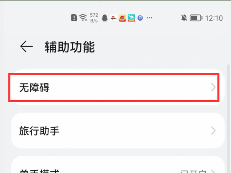2、点击“无障碍”按钮,进入无障碍设置的页面。