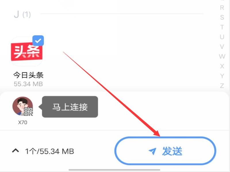 3、在“应用”内选择一个需要分享的软件,点击右下角的“发送”按钮即可。