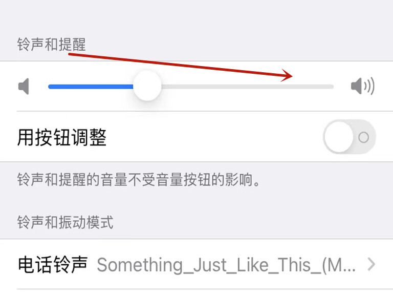 2、往右拉动铃声和提醒的“音量条”即可把锁屏声音调大。