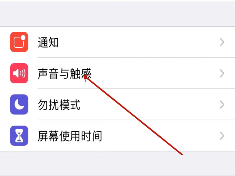 1、打开手机设置,点击“声音与触感”进入声音与触感页面。
