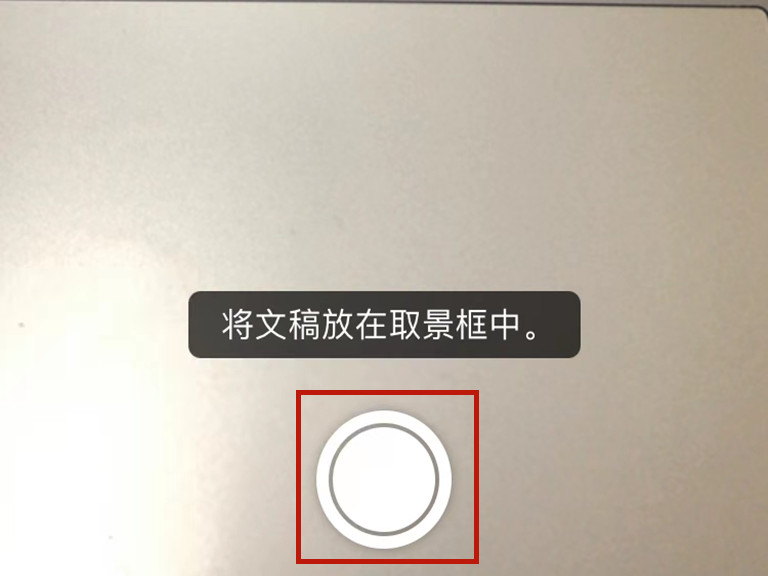 3、将文稿放在取景框中点击下方“圆形图案”即可扫描文件。