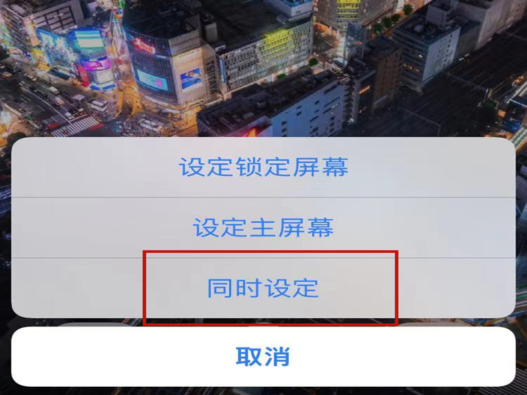 5、点击“设定”显示设定选项,再点击“同时设定”即可设置背景图片。