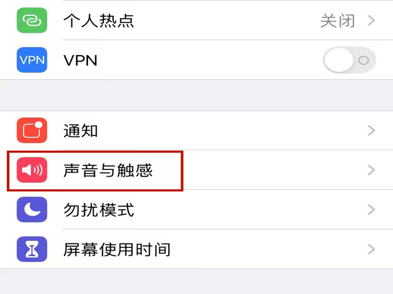 1、打开手机设置,点击“声音与触感”进入声音与触感页面。