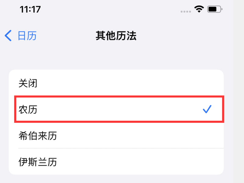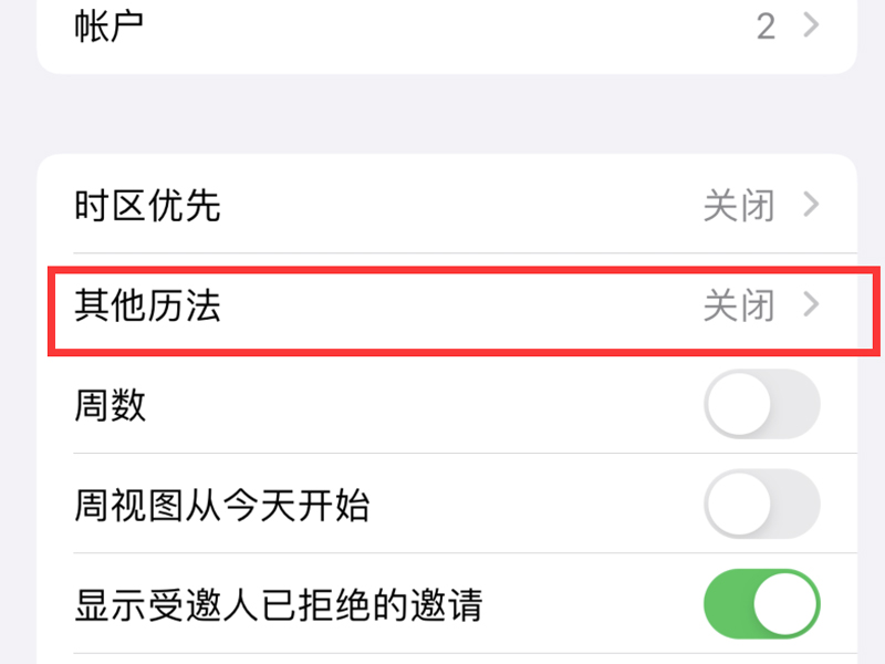 2、点击“其他历法”按钮,进入历法选择的设置页面。