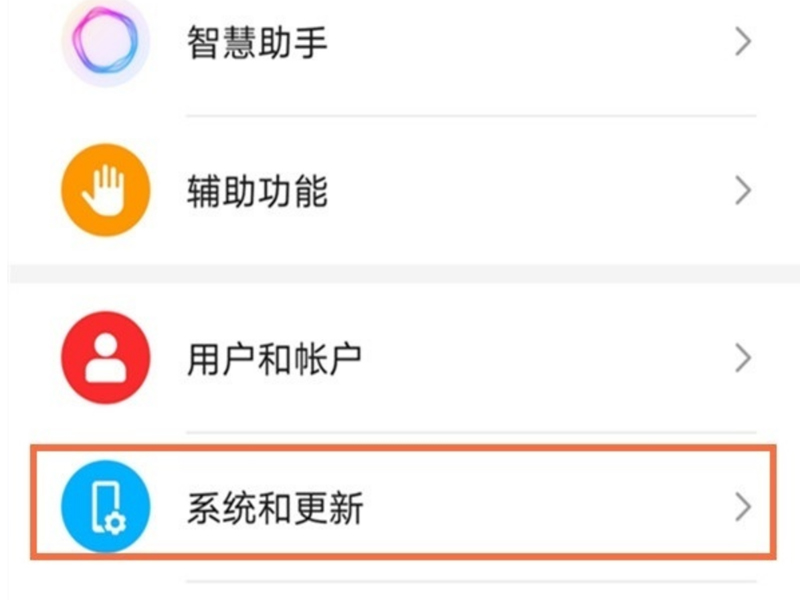 1、打开手机的设置,点击“系统和更新”按钮,进入系统设置中。
