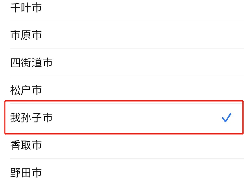 3、选择“日本——千叶县——我孙子市”,然后点击右上角“完成”即可完成。