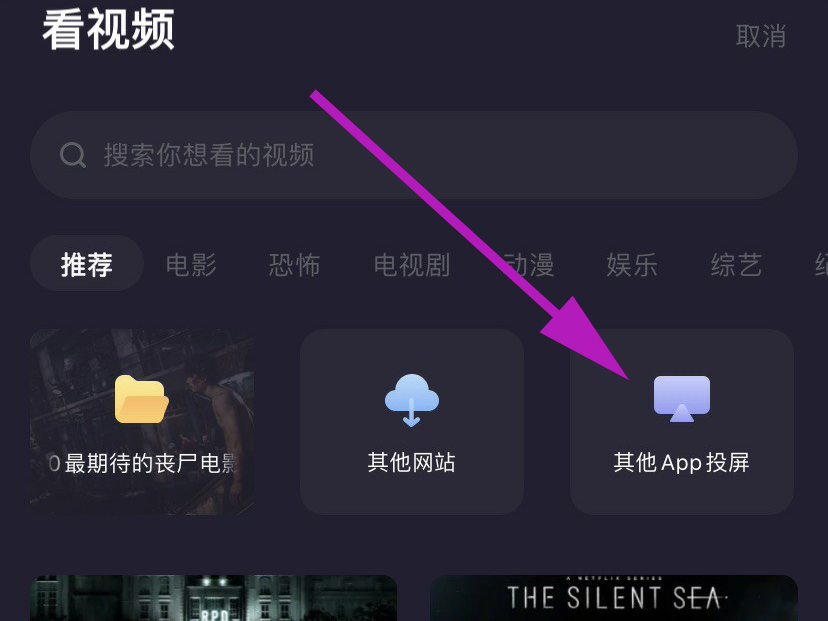 3、找到并点击“其他App投屏”选项。